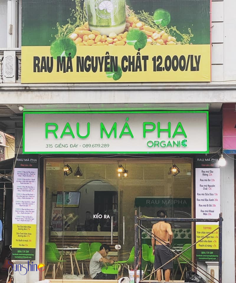 Dịch vụ Quảng Cáo Sunshine là đơn vị uy tín, đã tham gia thi công nhiều bảng hiệu quảng cáo cho các cơ sở kinh doanh sinh tố rau má tươi trên địa bàn TP.HCM, chúng tôi đã lên thiết kế phù hợp cho chuỗi hệ thống rau má tươi, nhằm đem đến khách hàng những sản phẩm chất lượng tốt nhất, tạo ra không gia mới cho cửa hàng.